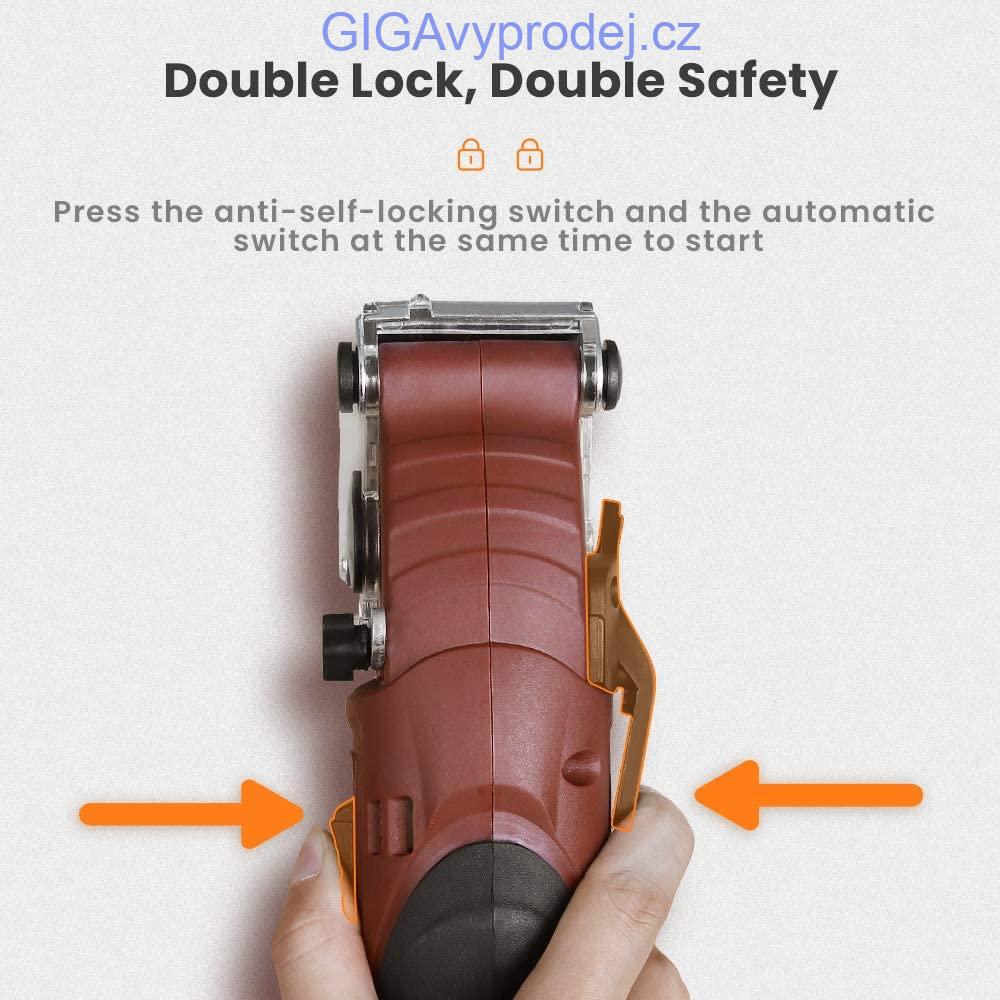 • 【Bezpečný design】:1.Funkce dvojitého zámku: Používejte pouze při současném zapnutí antisamoblokovacího spínače a startovacího spínače, aby byl zajištěn bezpečný provoz.2.Auto Rebound Shield: Vybaveno automatickým odskočením ochranný kryt, který se po použití automaticky odrazí, pohodlný a bezpečný.